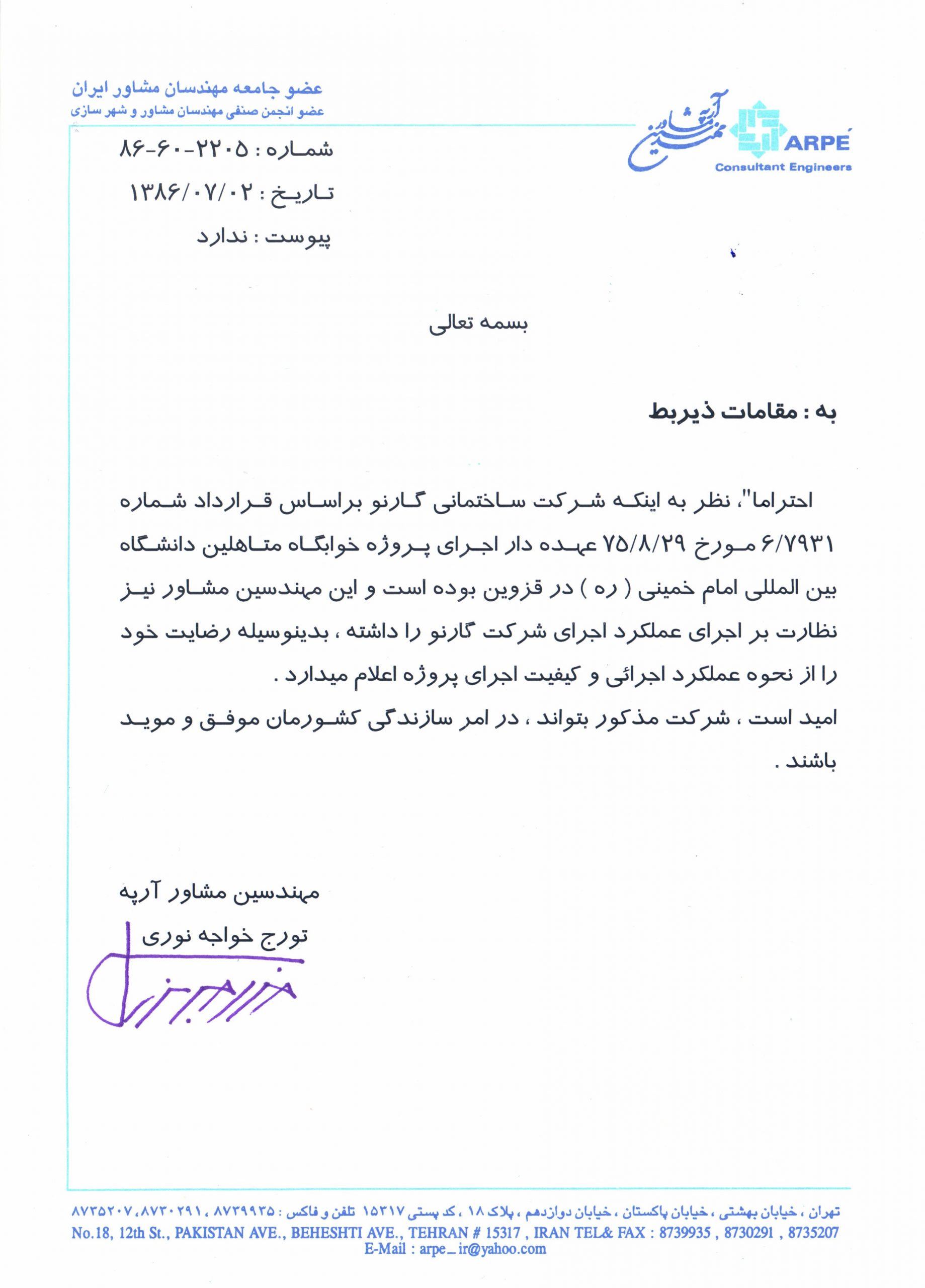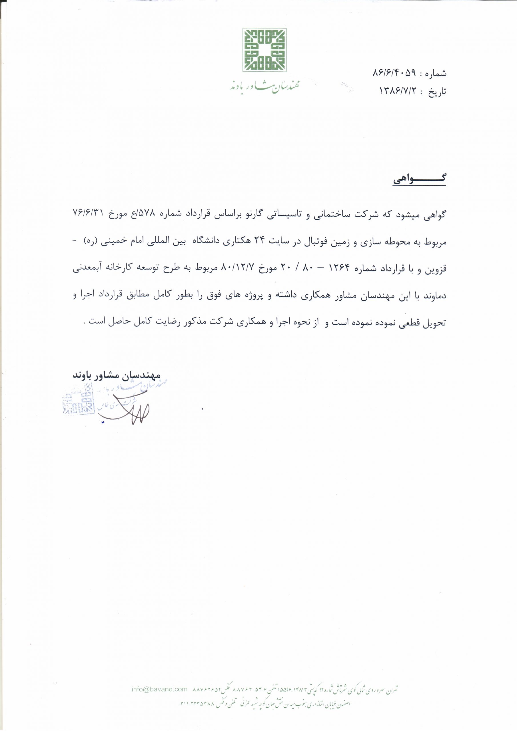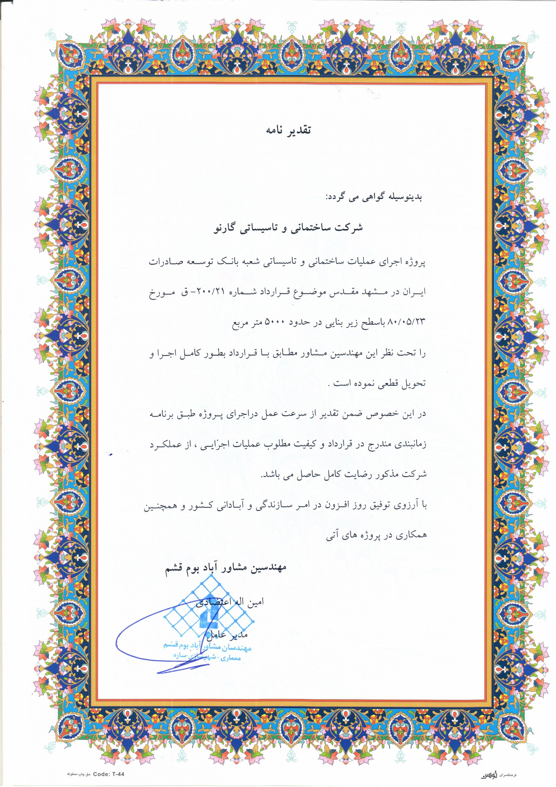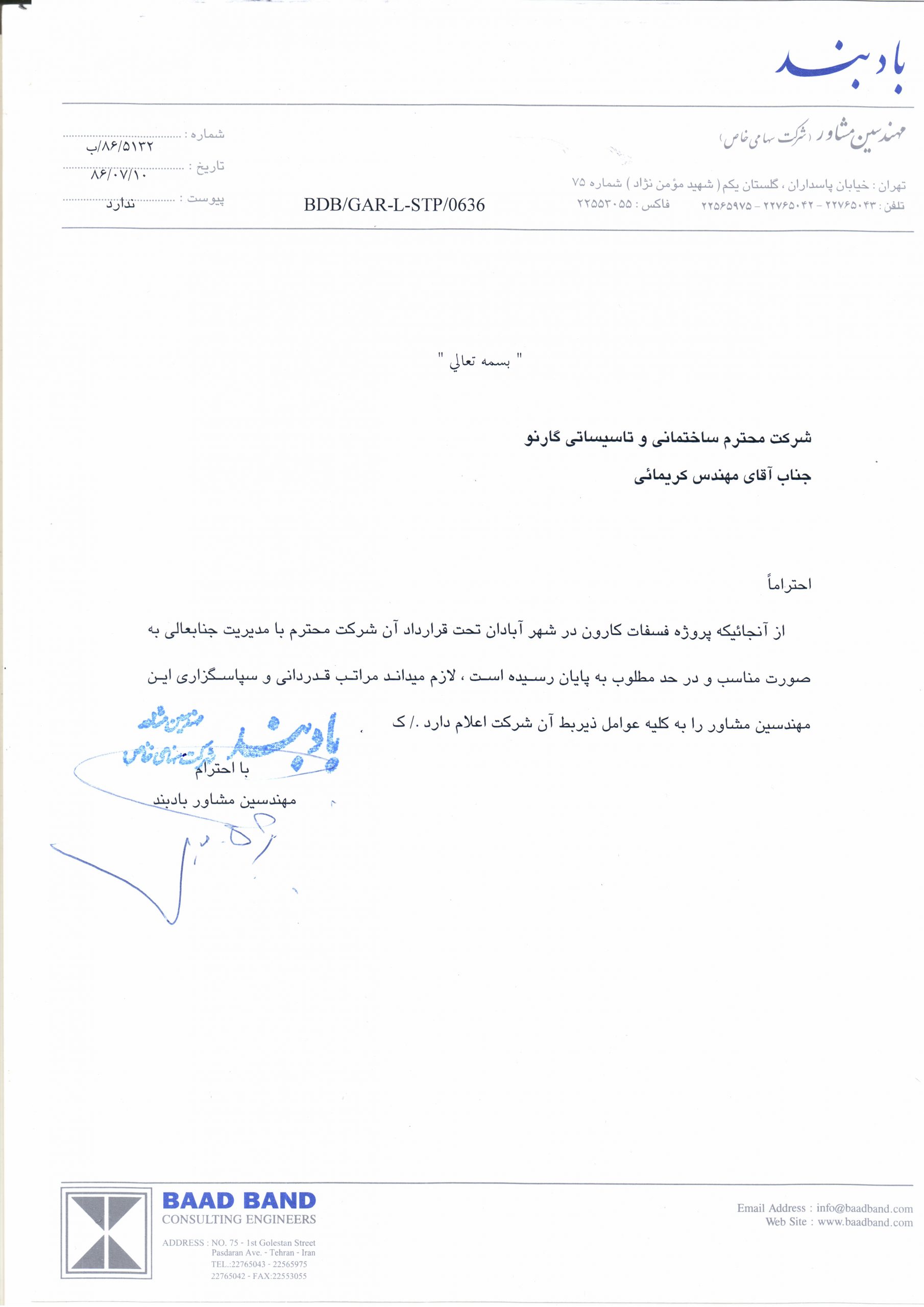 Awarded By: Bavand Consulting Engineers