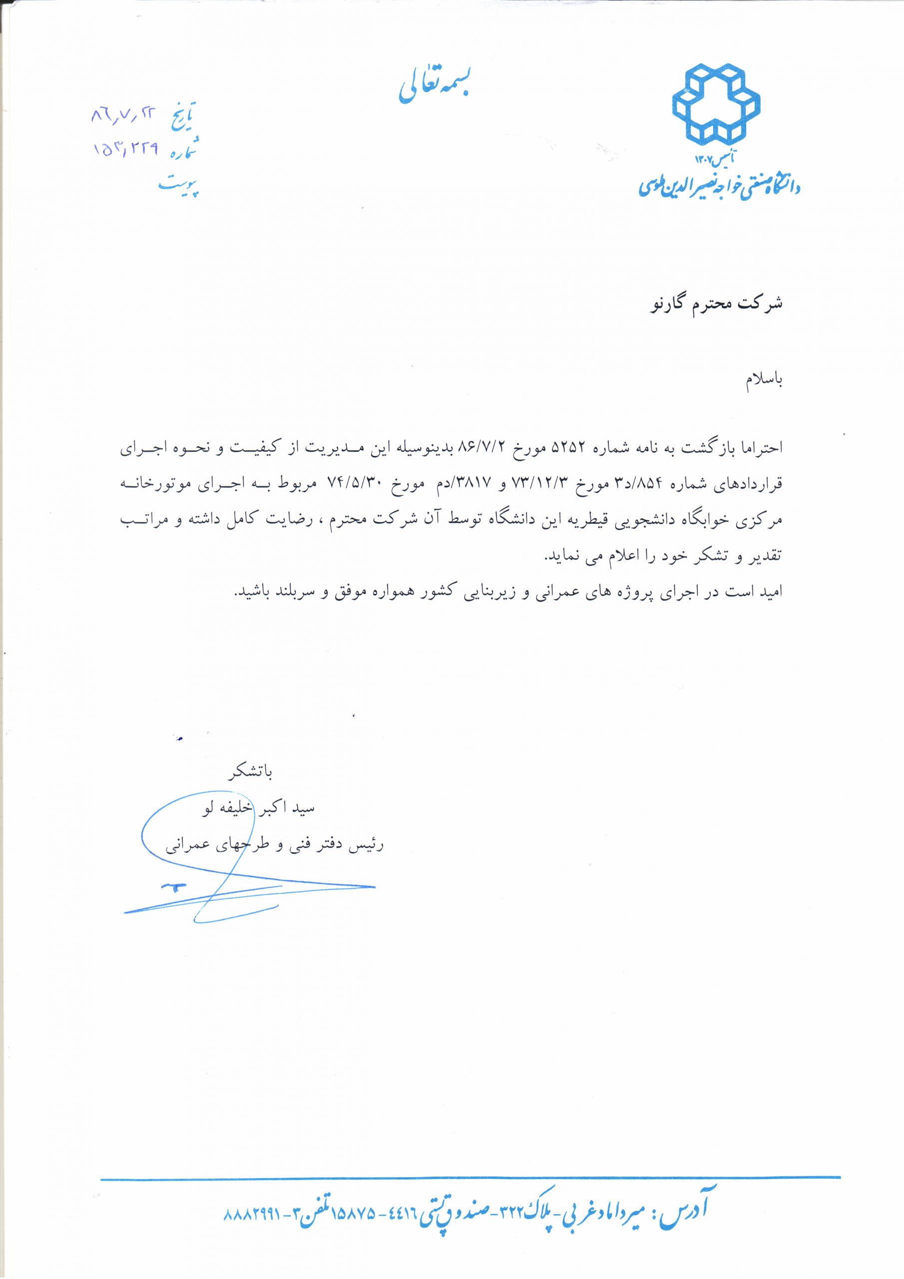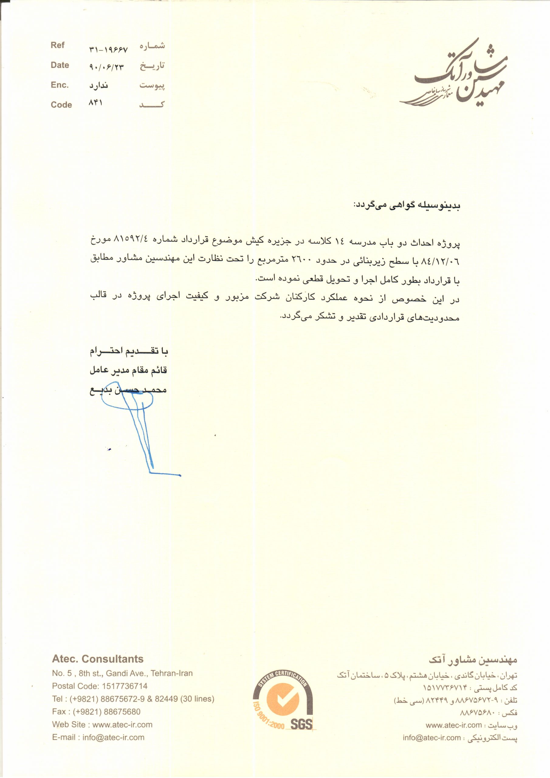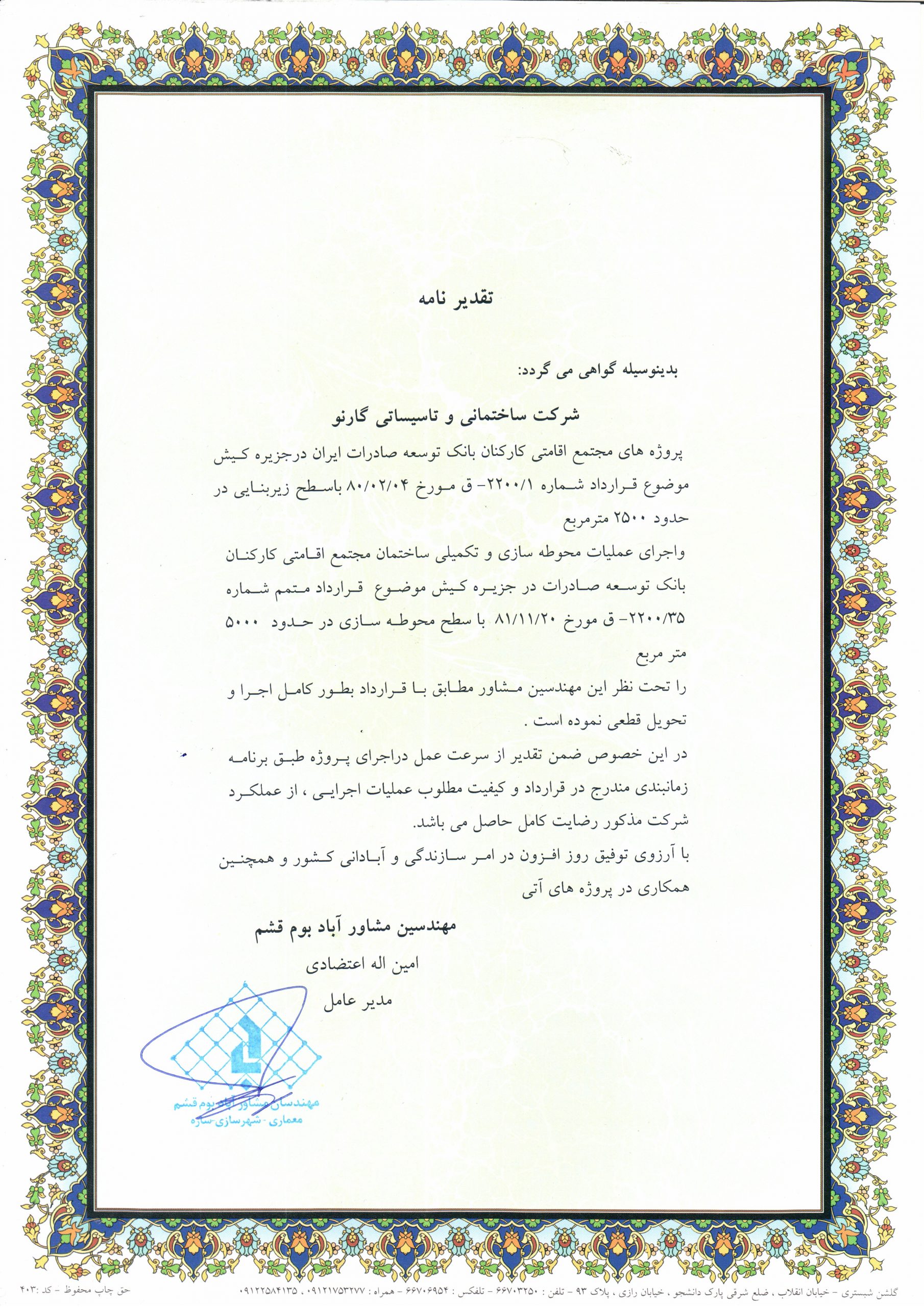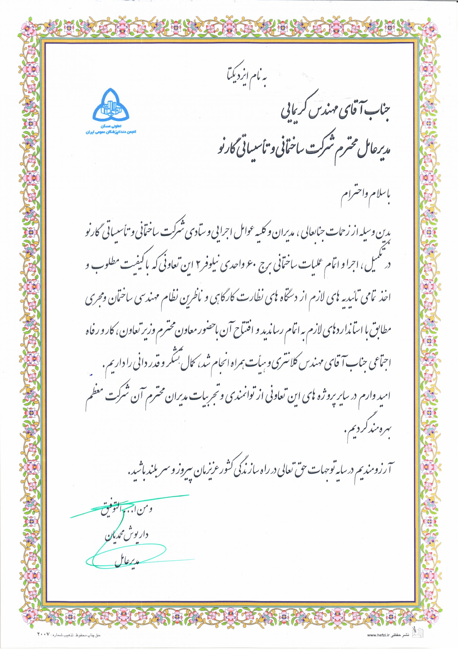 Awarded By: Bavand Consulting Engineers