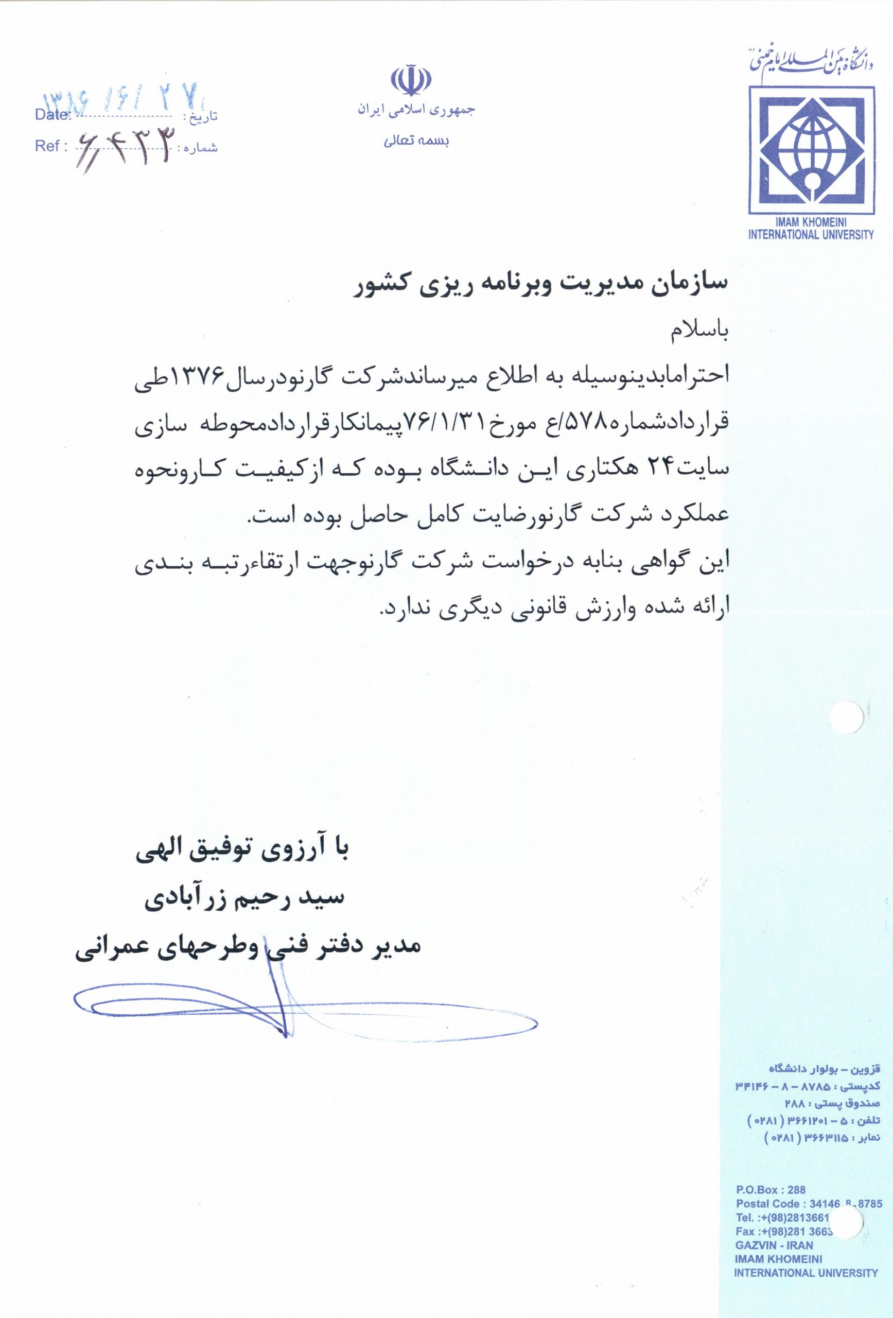 Project: Dormitory of Imam Khomeini International University