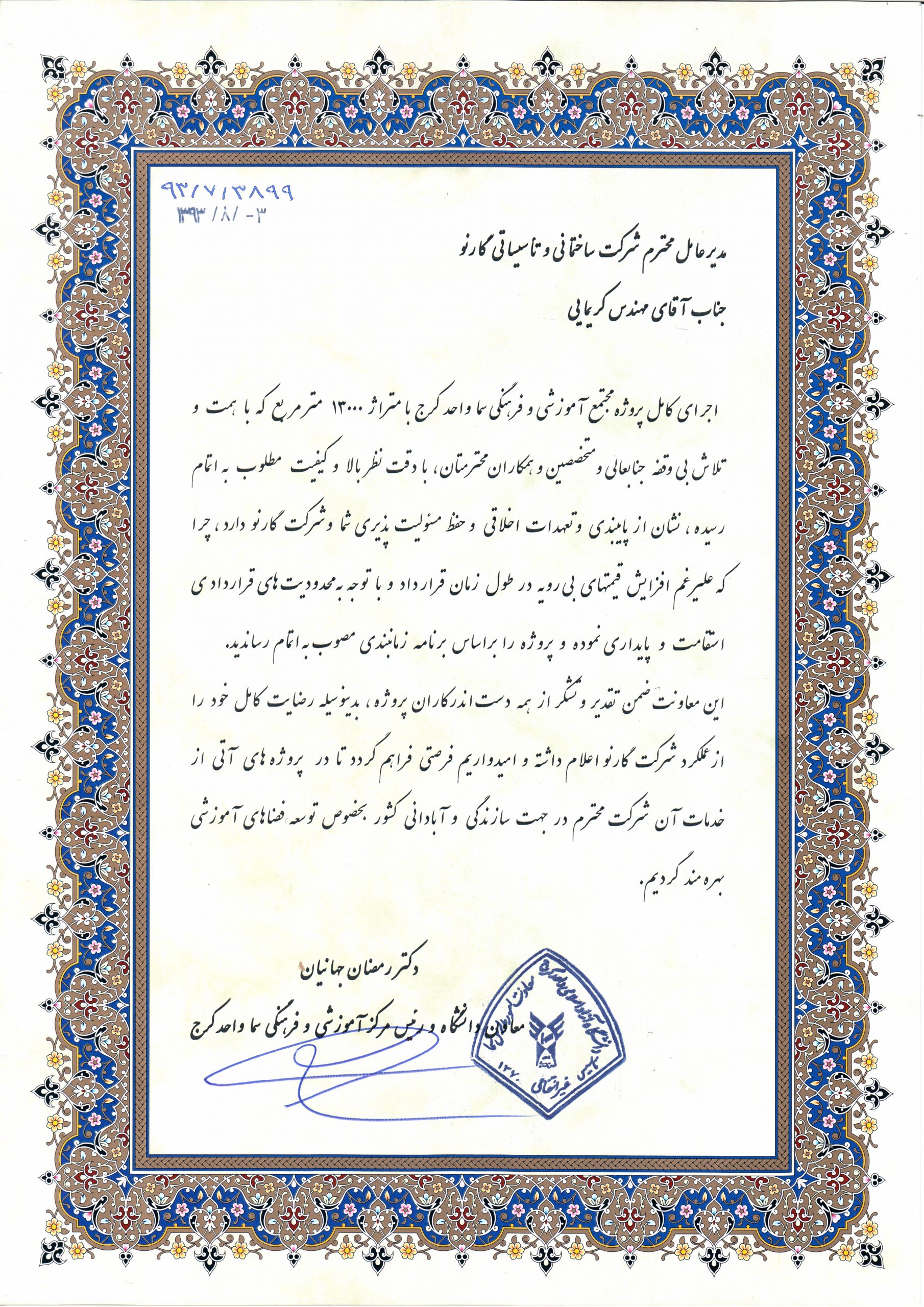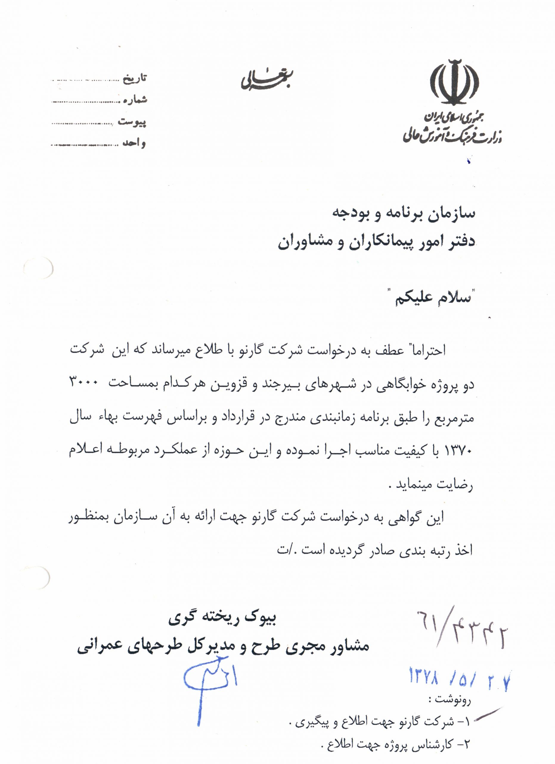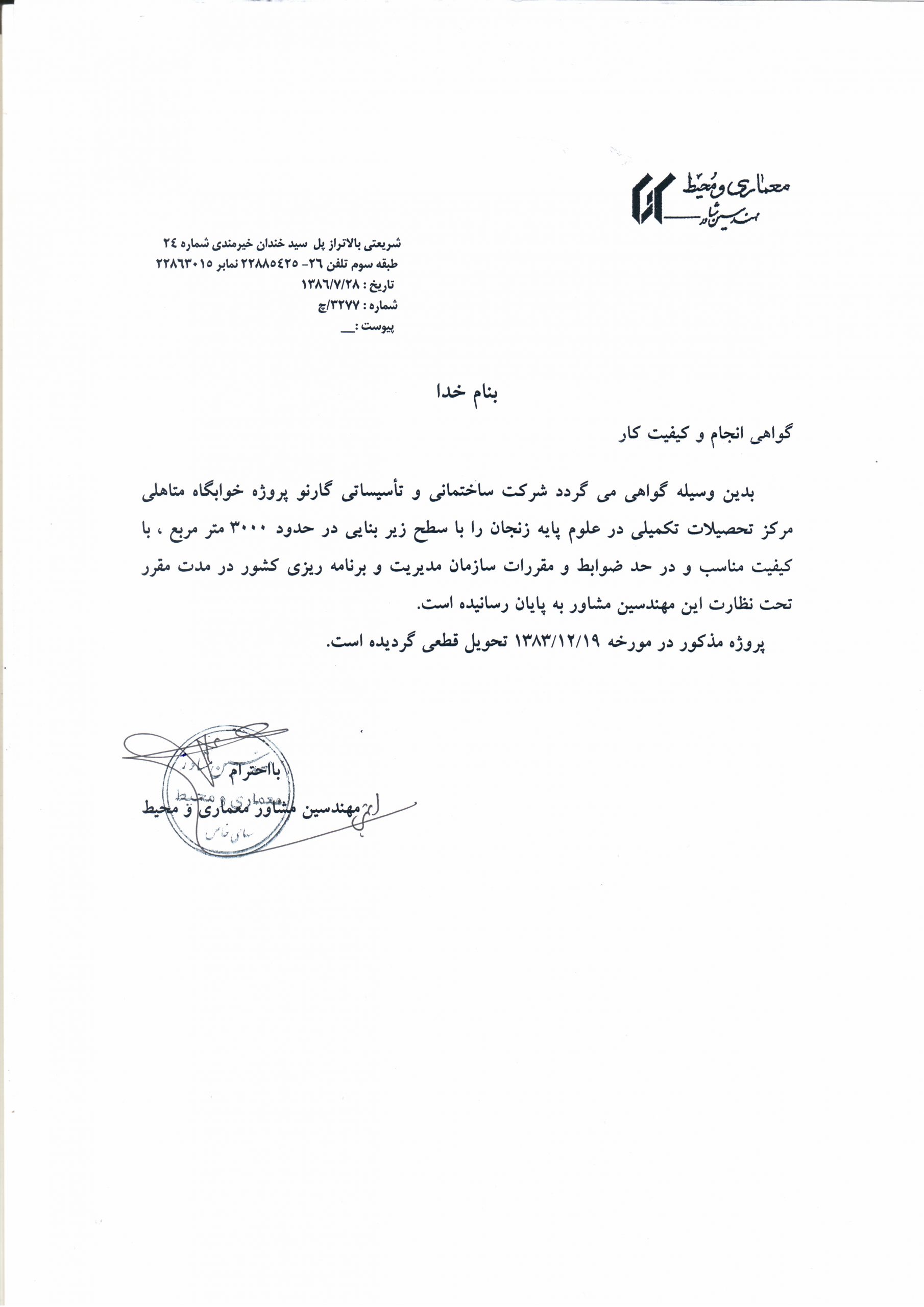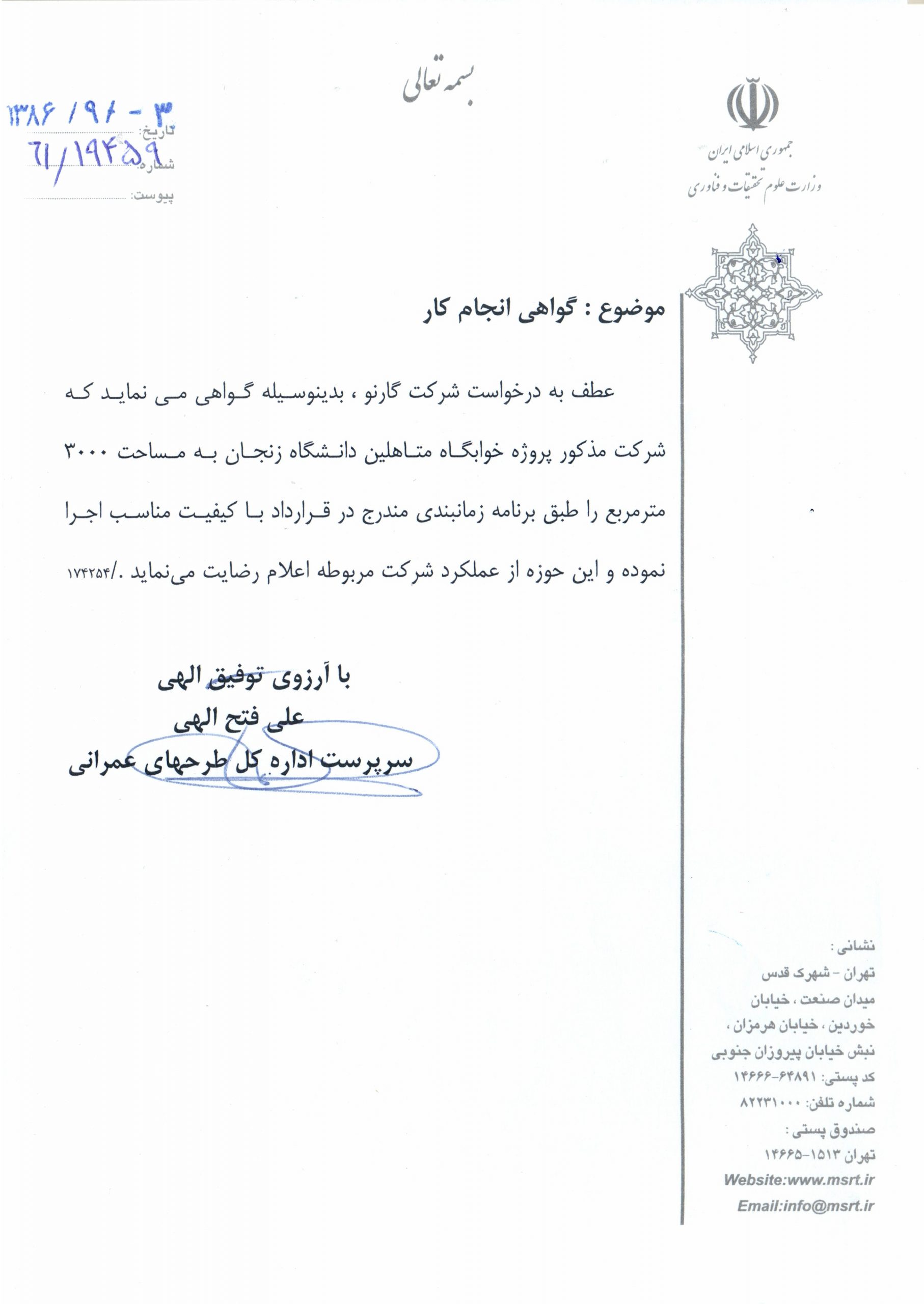 Project: Dormitory of Postgraduate Center of Zanjan Medical Education University, Zanjan, Iran