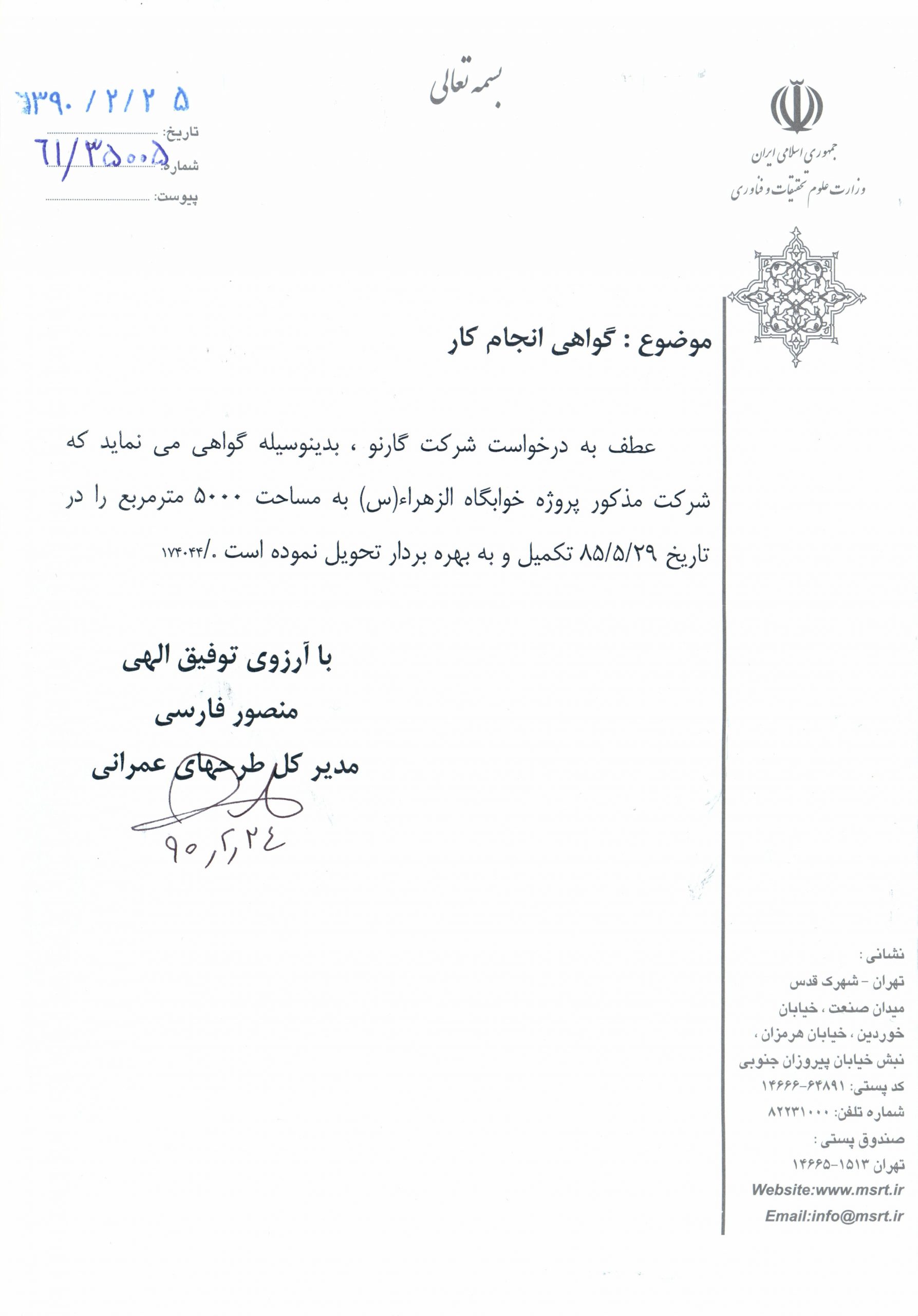 Awarded By: Iran Ministry of Science, Research and Technology