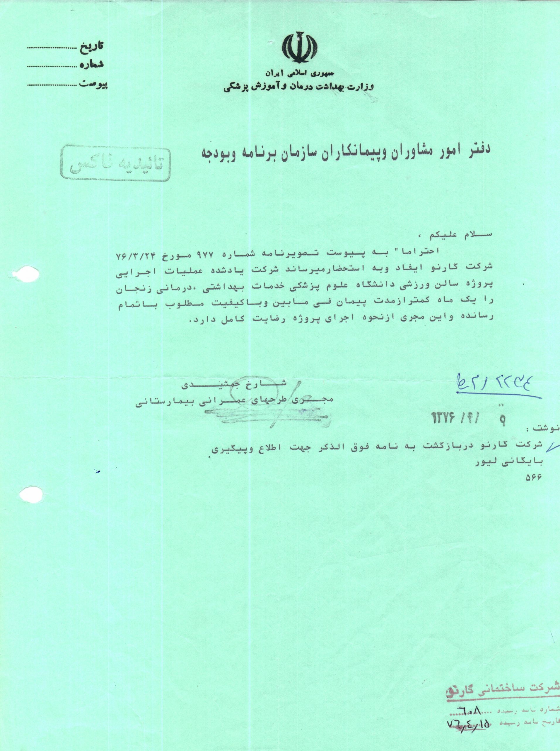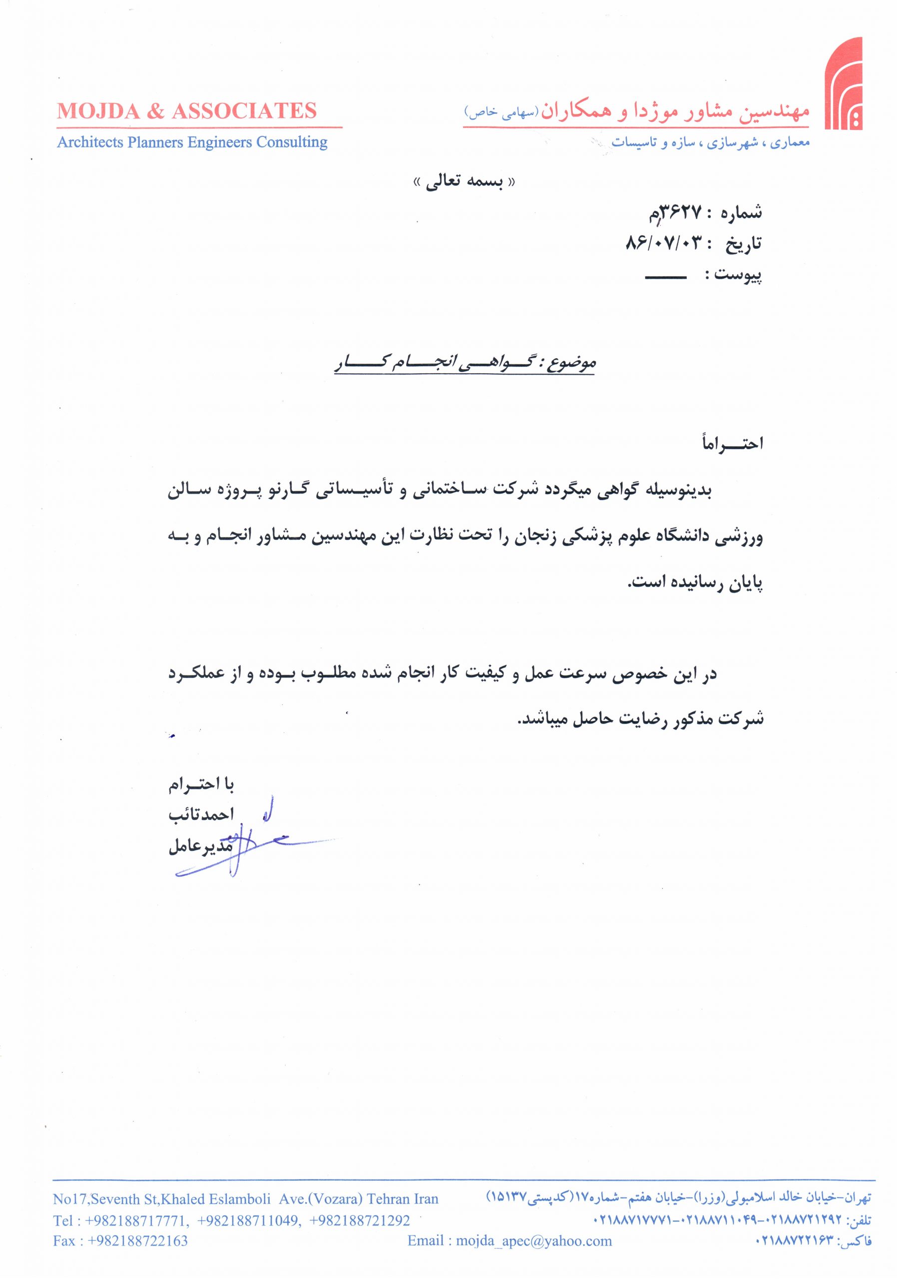Project: Sport Arena of Zanjan Medical Education University, Zanjan, Iran