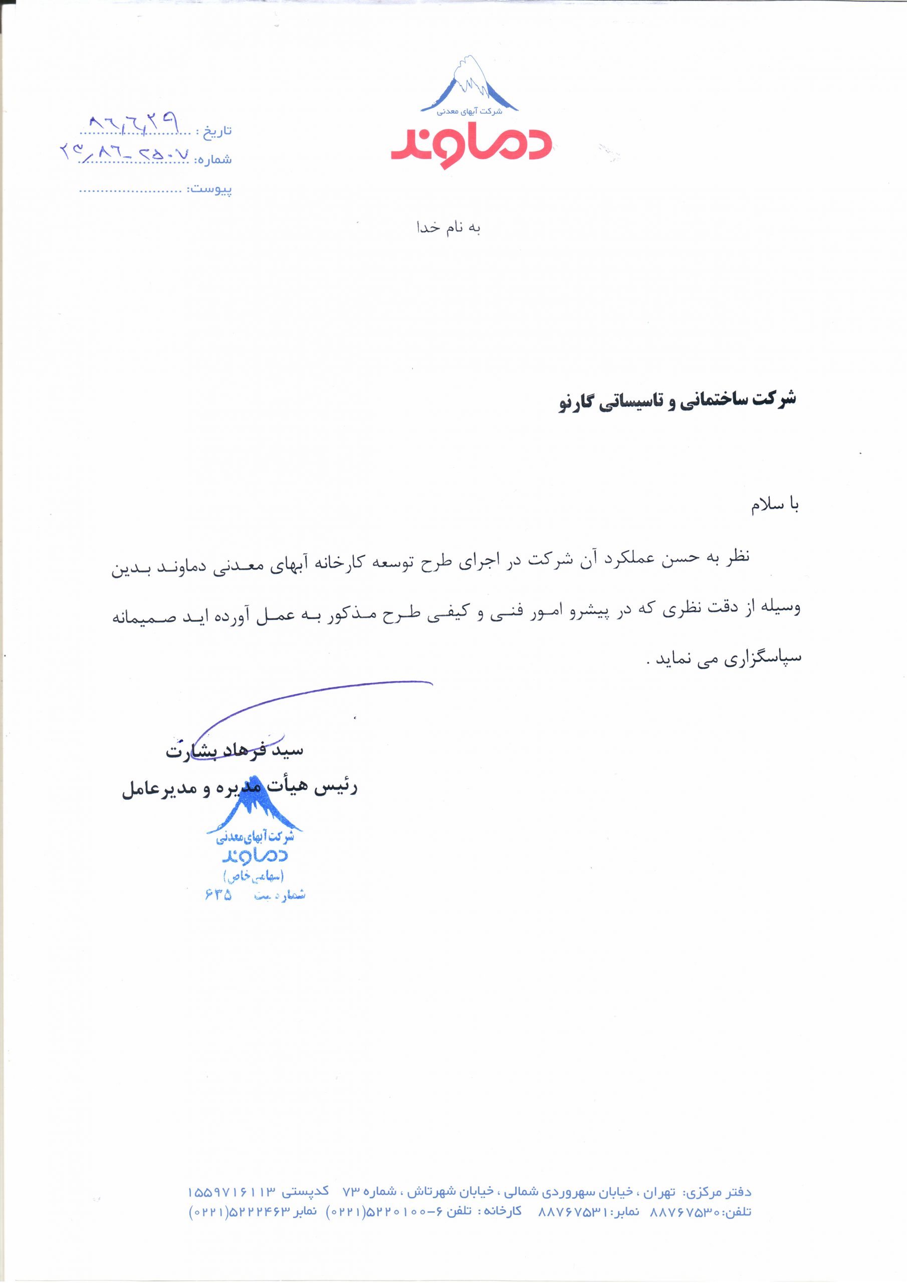 Project: Development Plan of Damavand Mineral Waters Factory, Damavand, Iran